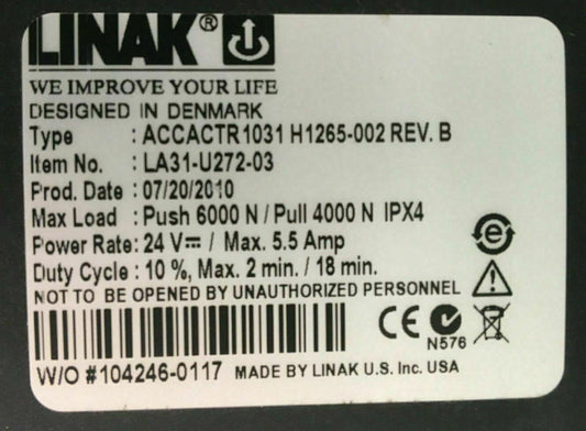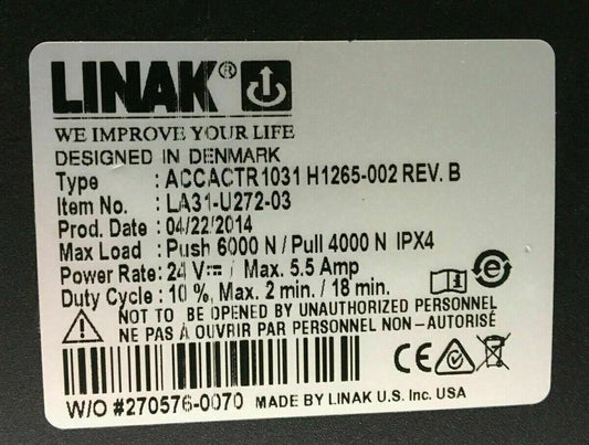 Tilt Actuator Linak model # ACCACTR 1031 LA31-U272-03 for Quantum 600 #E889
