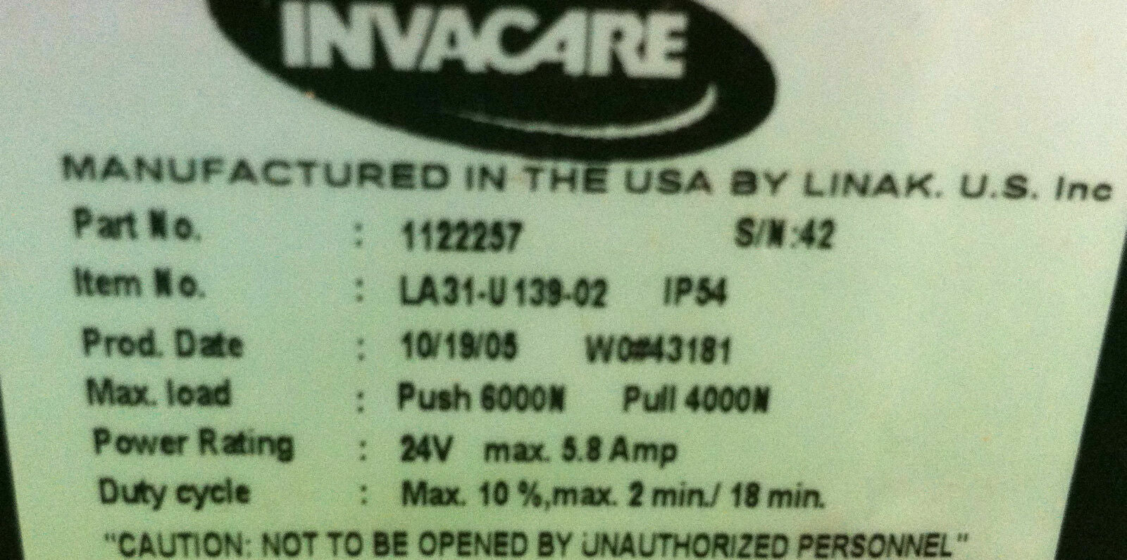 Invacare Recline Actuator Linak Type 1122257 #3451