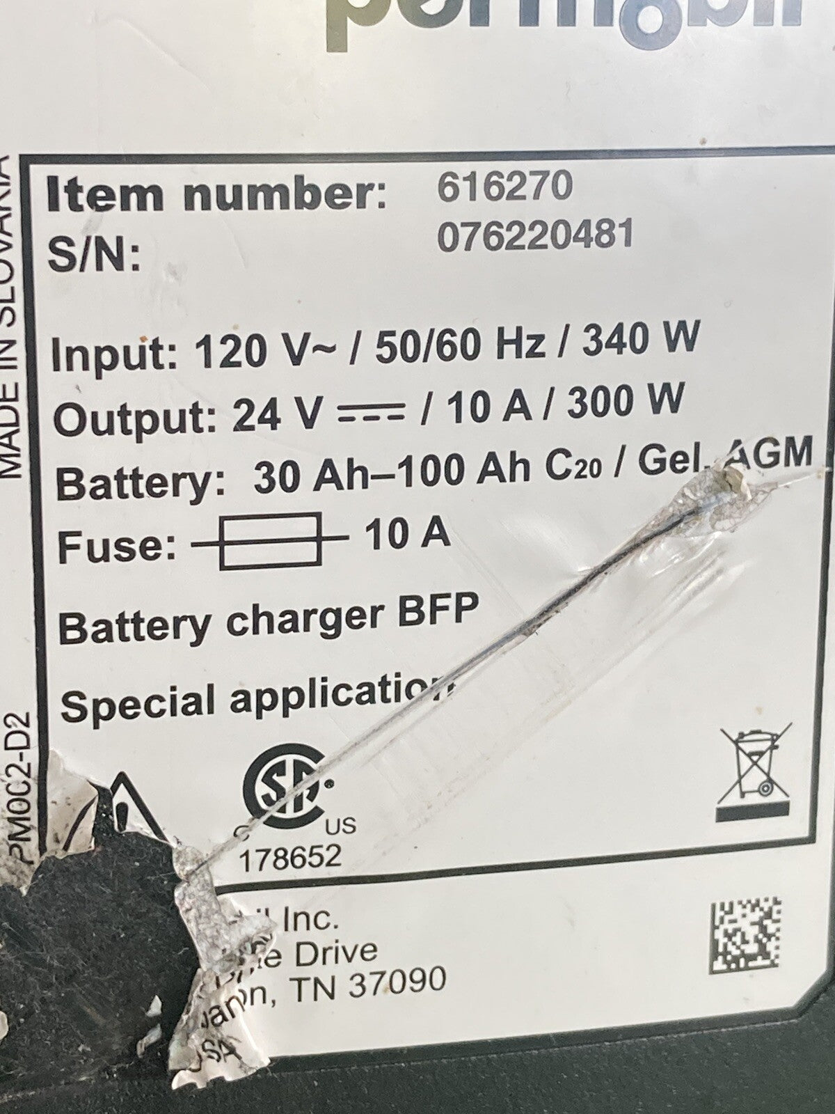 Permobil 10 amp VoltPro Power Wheelchair Battery Charger 24V 10A 616270 #K698